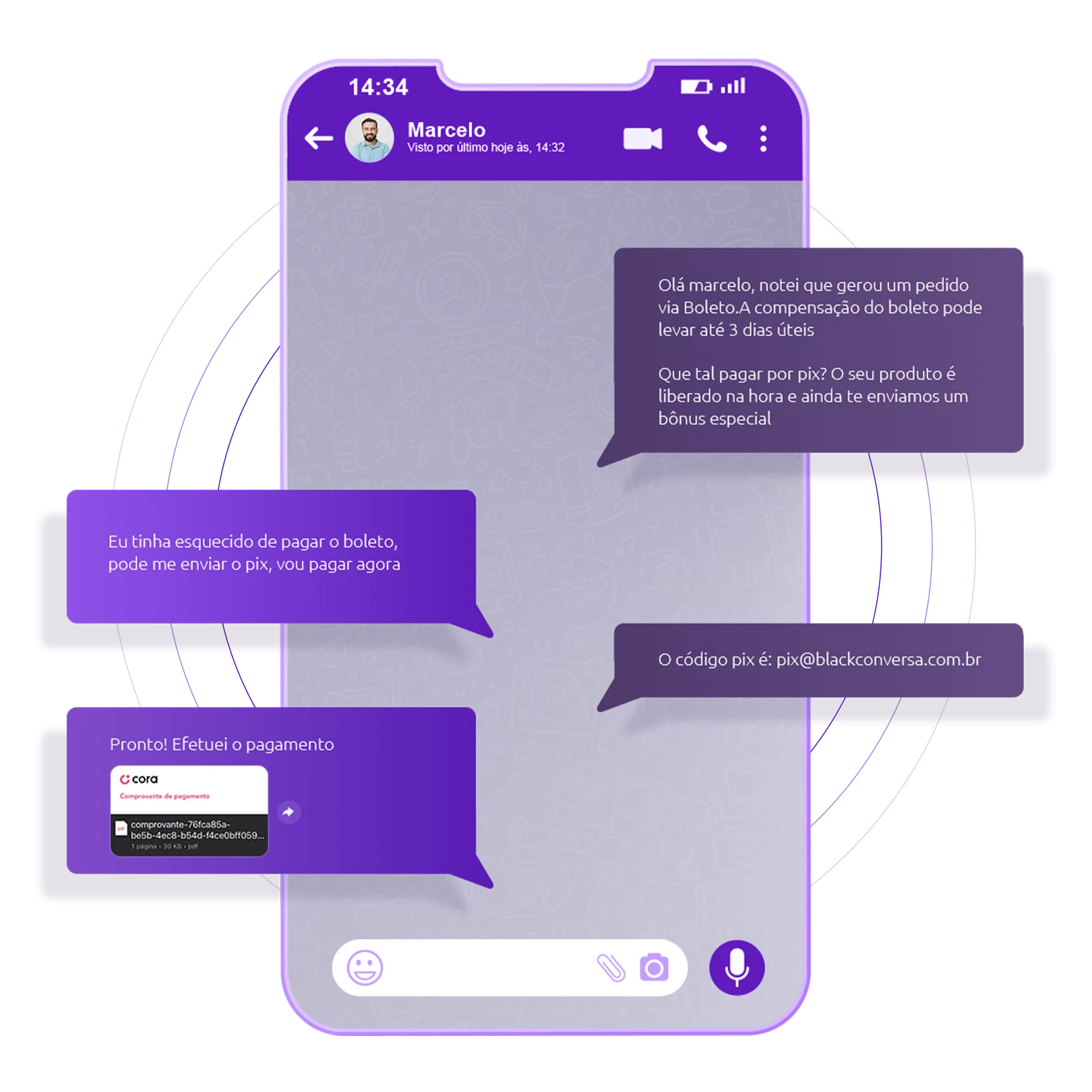 Mas com o MillionChat a história é outra, seu cliente gerou um boleto e na mesma hora nosso chatbot entra em contato com seu cliente no whatsapp transformando seu boleto NÃO PAGO em PIX PAGO e o melhor de maneira 100% automatizada e humanizada, 7 em cada 10 boletos serão convertidos em Pix pagos.